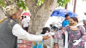 जन सहयोग से लगातार भूखों एवं जरूरतमंदों को खाना वितरित किय