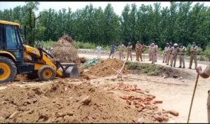 तालाब की भूमि से अवैधरूप से मूर्ति स्थपना कर कब्जा कर लिया जिसे हटाने गयी प्रशासनिक टीम पर ग्रामीणों ने पथराव कर दिया I जेसीबी चालक एक महिला दरोगा व कास्टेबल सहित कई घायल, एएसडीएम की मौजूदगी में पुलिस ने निकाला फ्लैग मार्