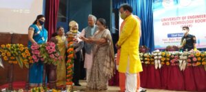 रूडकी :-रुड़की कोर कॉलेज में दो अलग संस्थानों सहित यूनिवर्सिटी ऑफ इंजीनियरिंग एंड टेक्नोलॉजी का विधिवत दीप प्रज्वलित कर उद्घाटन मुख्यअतिथि उत्तराखंड राज्यपाल के कर कमलों द्वारा किया गया। इस दौरान कार्यक्रम में पूर्व मुख्यमंत्री त्रिवेंद्र सिंह रावत समेत प्रदेश के अन्य नेता भी शामिल रहे। राज्यपाल बेबीरानी मौर्य ने कोर इंस्टीट्यूट को बधाई देते हुए कहा कि छात्रों के लिए यह ऐसा विश्वविधालय होगा जिससे वह छात्र देश- विदेश में नाम रोशन करेंगे। उन्होंने कहा कि ऐसे कोरोना काल मे यह ऐसा इंस्टीट्यूट बना है जो लोगों के लिए बहुत उपयोगी रहा । इसके साथ ही जो शौध संस्थान खुला है यह कोरोना समेत अन्य बीमारियों से निपटने के लिए सहायक सिद्ध होगा। उन्होंने कहा कि पिछले दो साल से देश बड़े संघर्षों के दौर से गुजर रहा है। ऐसे में नए विश्वविद्यालय का शुभारम्भ एक सु:खद अनुभव है। मै संस्थान के साथ प्रत्यक्ष परोक्ष रूप से जुड़े सभी लोगों को अपनी शुभकामनाये दी । मैं आश्वस्त हूँ निश्चित रूप से यह विश्वविद्यालय देश के उत्थान में एक महत्वपूर्ण भूमिका निभाएंगे। उन्होंने कहा आधुनिक जगत में शिक्षा के माध्यम भले ही बदल गये हो परन्तु महत्व कम नहीं हुआ है बल्कि और अधिक बढ़ गया है। उच्च शिक्षा आर्थिक व सामाजिक विकास की धुरी है।सदैव उच्च लक्ष्य निर्धारित किया और उस लक्ष्य को प्राप्त करने के लिए हर सम्भव कोशिश की। एक दिन ऐसा आयेगा कि वो लक्ष्य आपको जरूर हासिल होगा। साथ ही उन्होंने बताया कि मुझे खुशी है कि कोर में विभिन्न विषयो पर बहुत कार्य चल रहा है और यहा के विद्यार्थी एवं शिक्षक बड़े कठिन परिश्रमी है।