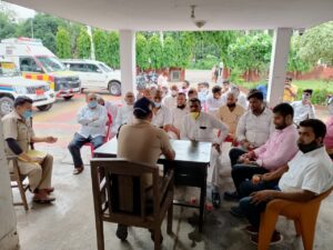 झबरेड़ा:- झबरेड़ा थाना अध्यक्ष रविंद्र कुमार ने थाना परिसर में क्षेत्र के गणमान्य लोगों की एक बैठक आयोजित की गई जिस में आने वाले त्योहार ईद उल अजहा को शांतिपूर्वक मिलजुल कर भाईचारे के साथ मनाने की अपील की I थाना अध्यक्ष रविंद्र कुमार ने क्षेत्र से आए सम्मानित ग्रामीणों को संबोधित करते हुए कहा कि जिस जगह ईद उल अजाह मौके पर बलि दी जाती है वहीं पर ईद उल अजहा के मौके पर बली देने का काम करें हिंदू मुस्लिम एकता की मिसाल को कायम करते हुए त्योहार मनाए तथा कोविड-19 किन नियमों का पालन करते हुए अपने घरों पर रहकर ही त्यौहार मनाए इस मौके पर भारतीय किसान यूनियन विधिक प्रकोष्ठ के प्रदेश अध्यक्ष फरमान त्यागी, सोहन त्यागी, तामीन त्यागी, जुल्फिकार अली, शकील अहमद, डॉक्टर जोध सिंह, एजाज, आदि दर्जनों लोग मौजूद रहे I